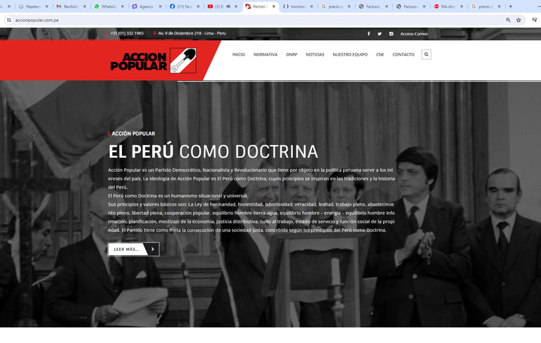 Acción Popular es un Partido Democrático, Nacionalista y Revolucionario que tiene por objeto en la política peruana servir a los intereses del país. La Ideología de Acción Popular es El Perú como Doctrina, cuyos principios se inspiran en las tradiciones y la historia del Perú.